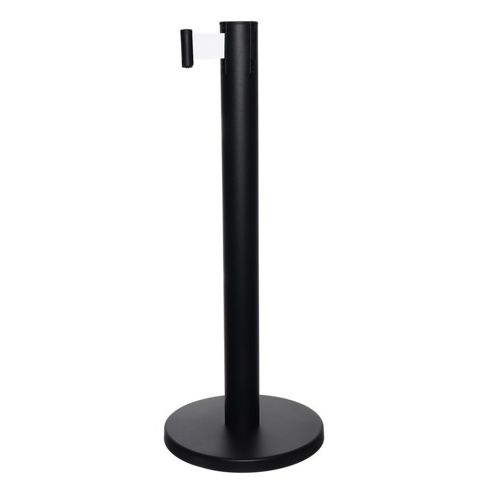 Стойка ограждения черная, с вытяжной лентой-280см белая, высота-90см, d- 6см, напольный d-32см