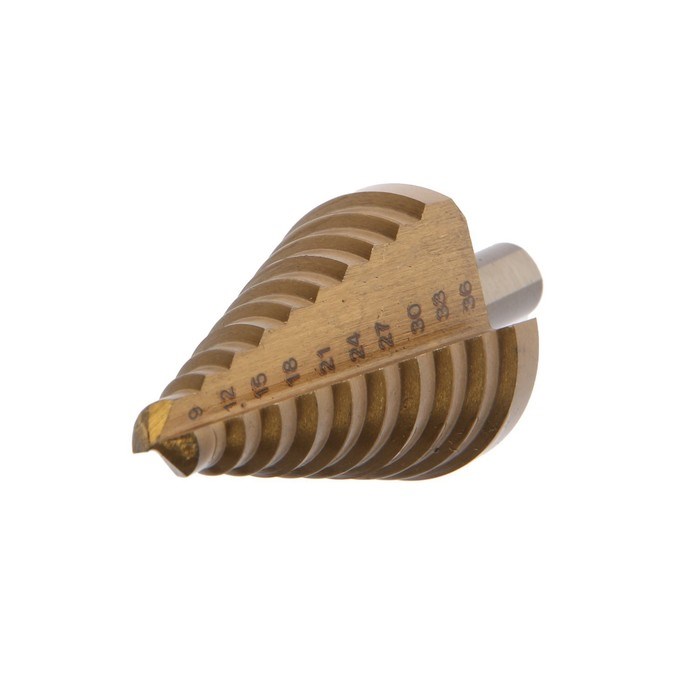 Сверло ступенчатое ТУНДРА, HSS, TiN, трехгранный хвостовик, 9 - 36 мм