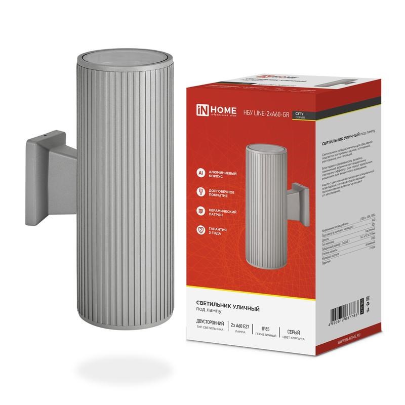 Светильник НБУ LINE-2хA60-GR CITY E27 IP65 230В уличный двусторон. под лампу 2хA60 алюм. сер. IN HOME 4690612037783