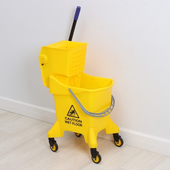 Тележка уборочная для клининга с механическим горизонтальным отжимом (механизм пластик) 31 л, цвет жёлтый