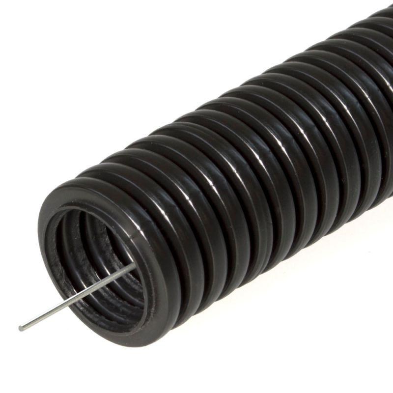 Труба гофрированная ПНД легкая d25мм с протяжкой 350 Н безгалоген. (HF) стойкая к УФ черн. (уп.50м) Промрукав 161558