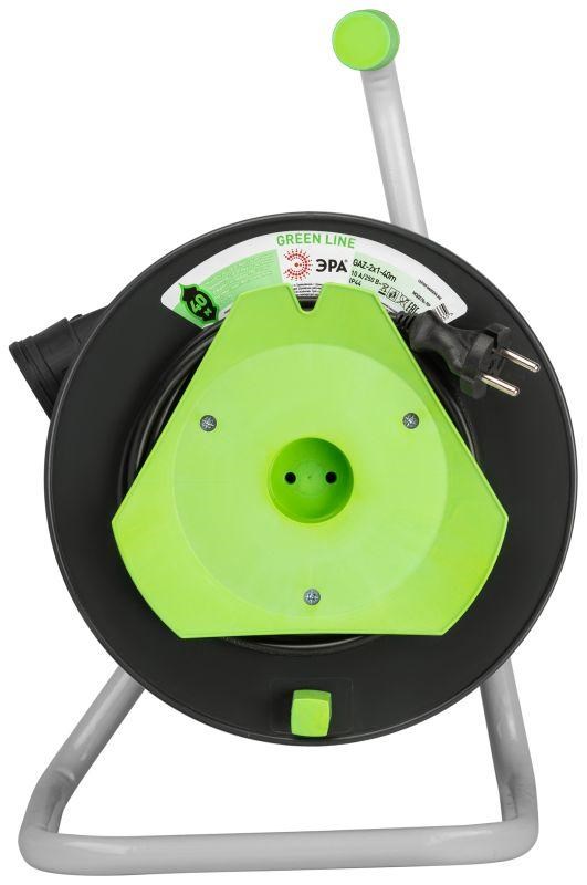 Удлинитель силовой ЭРА GREEN LINE на пластиковой катушке GAZ-2x1-40m, 1 розетка без заземления. Провод 40м ПВС 2х1мм2. Мощность 10А/2200Вт. Используется для работы на строительных площадках или дачных участках. Удобен при работе с приборами, находящимися удаленно от стационарной розетки. Например, газонокосилки, электрические, пилы, триммеры или электродрели. Рама удлинителя сделана из высокопрочной стали, а пластиковой корпус катушки выполнен с применением негорючих добавок.