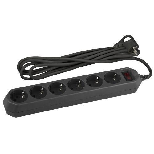 Удлинитель с сетевым фильтром 6х5м с заземл. 10А IP20 USF-6es-5m-B с выкл. с базов. защитой черн. Эра Б0037265