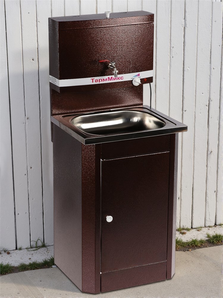 Умывальник "ТермМикс" подойдёт для использования на даче, в гараже, в мастерской и других местах без центрального водоснабжения. Мойка выполнена из нержавеющей стали.