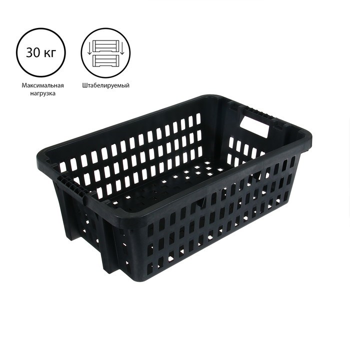 Ящик универсальный, пластиковый, 60 × 40 × 20 см, на 30 кг, чёрный