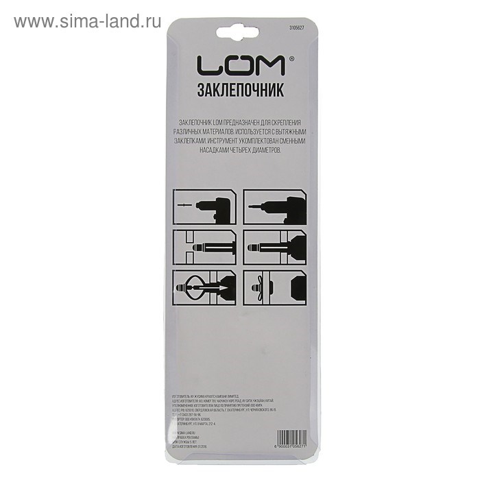 Инструмент используется для установки заклёпок. Применяется при скреплении листового металла, различных тонкостенных конструкций, металлических профилей. В комплекте есть насадки для заклёпок разных диаметров. Для удобства хранения и транспортировки предусмотрено блокировочное кольцо.