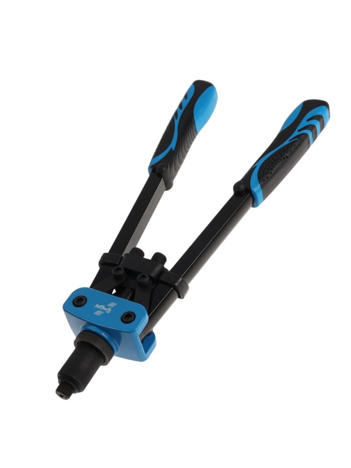 Корпус изготовлен из прочной закалённой стали. Длинные рукоятки снижают усилие, которое необходимо приложить для установки заклёпки. Двухкомпонентные ручки обеспечивают комфорт при работе.