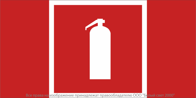 Знак безопасности "Огнетушитель" габаритные размеры 270х135 мм, фактические размеры 135х135 мм, сигнальный цвет - красный, контрастный цвет - белый